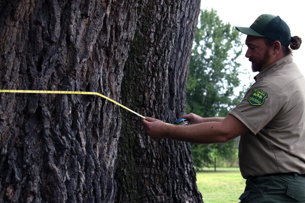 As the forester for Alachua and Putnam Counties, Jesse Frazier is the authority on what constitutes a champion. The role of a county forester is to accept nominations for champion trees and measure the tree to see whether it has earned a title.